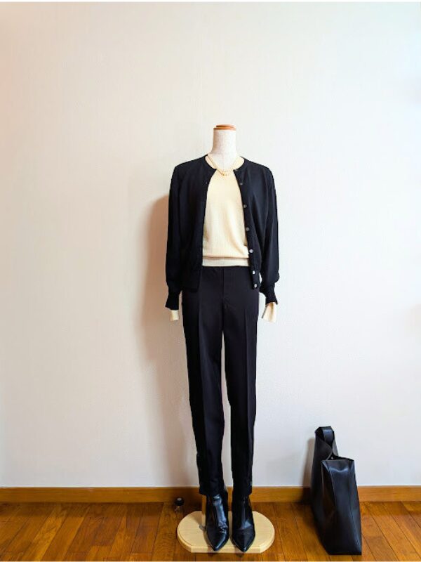 ブラックカーディガン+ブラックパンツ