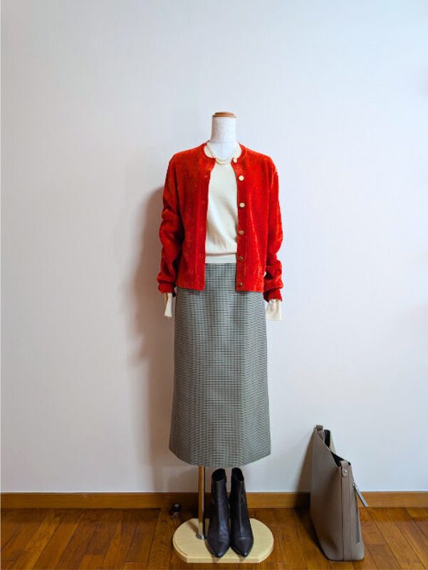 カーディガンをブラックに変えれば静かならもコントラストが効いています