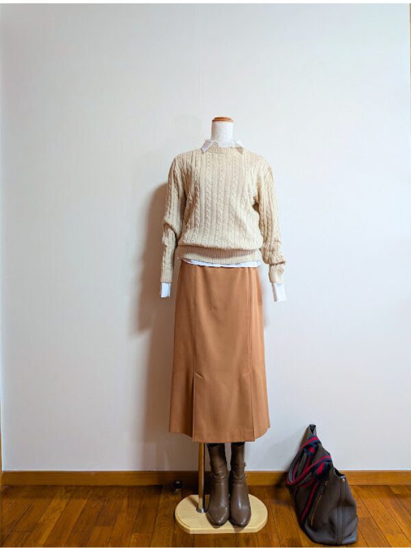 アラフィフ冬コーデ | ベージュ系ニットで叶える上品着回し