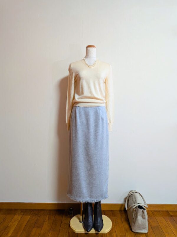 アイボリーニット+ダークグレースカート