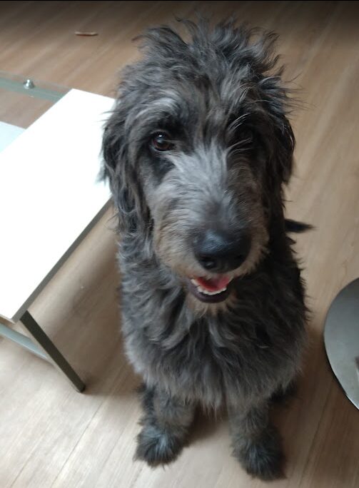 お迎えの時間。ドアを開けると、短く毛を刈ったイヴがぴょんぴょん跳ねながら待っていました。