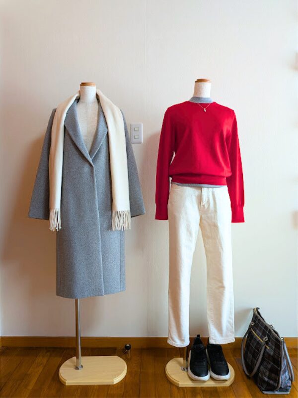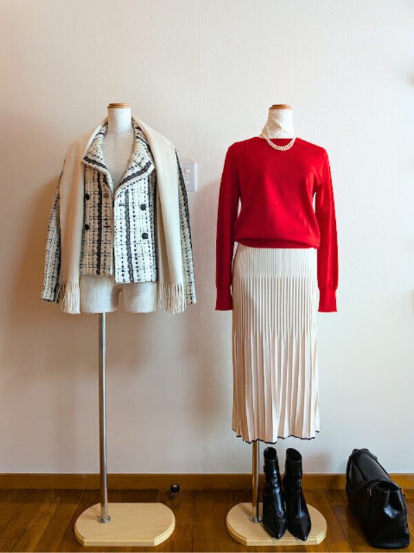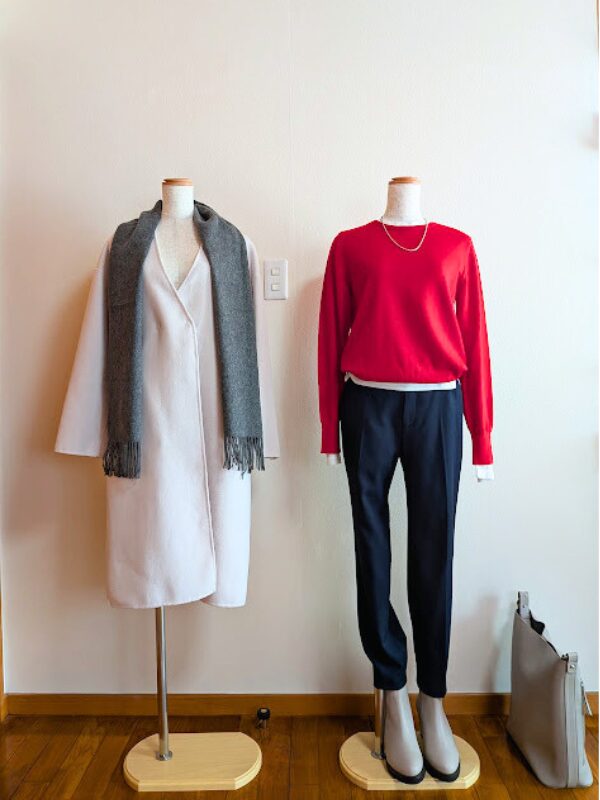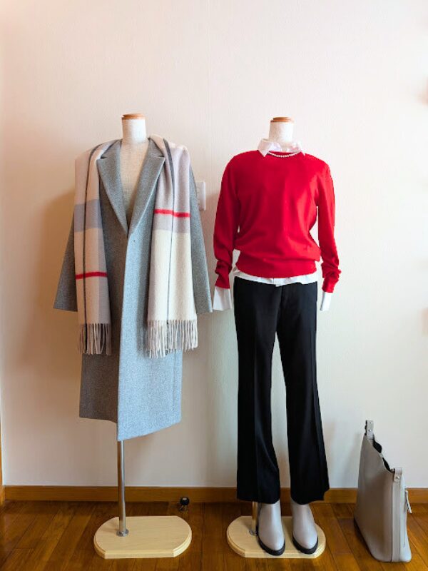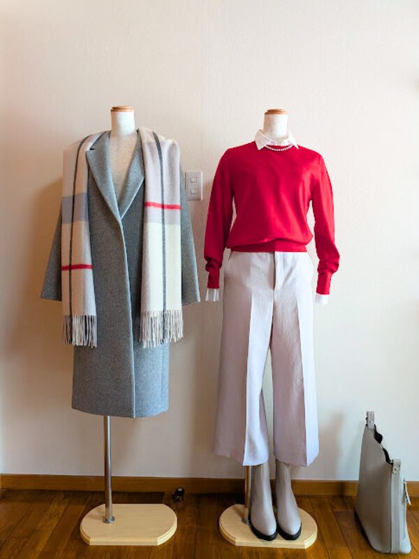 今回は、その赤ニットが見せる多彩な表情を探ってみます。